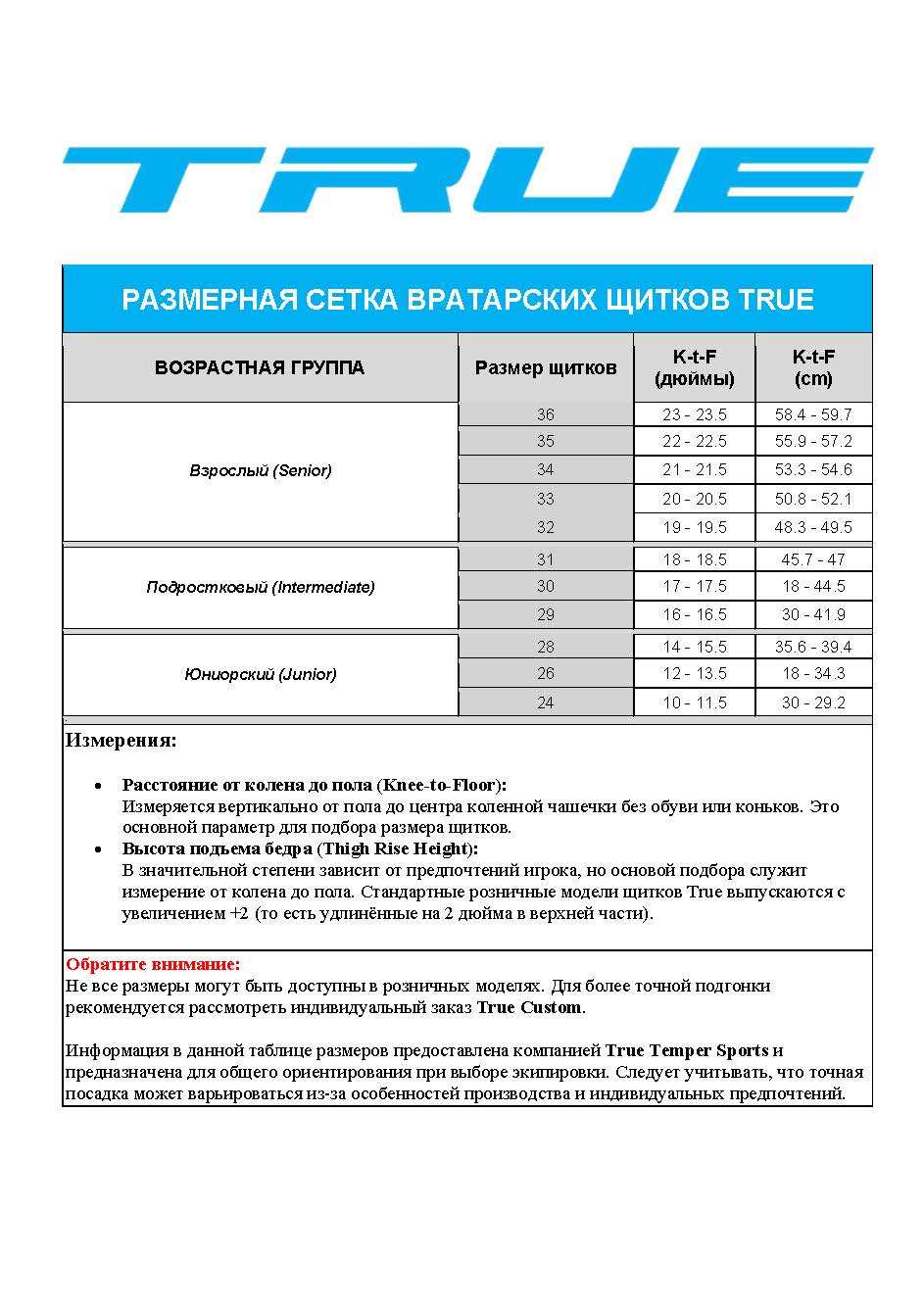 ТАБЛИЦА РАЗМЕРОВ