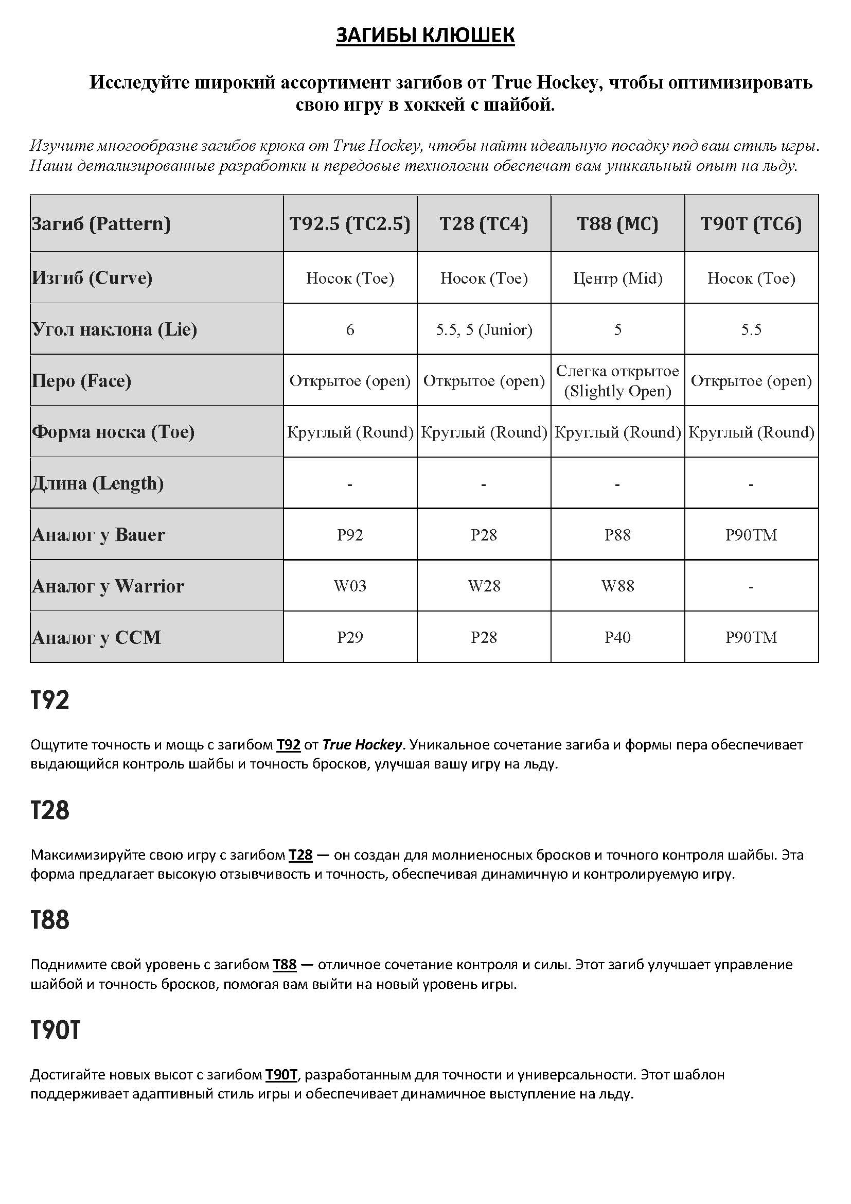 • Новая конструкция лопасти из четырех ребер жесткости обеспечивает исключительную жесткость и отзывчивость, позволяя быстро и точно контролировать шайбу. Как при дриблинге, так и при выполнении точных передач, эта клюшка позволит вам доминировать в игре.